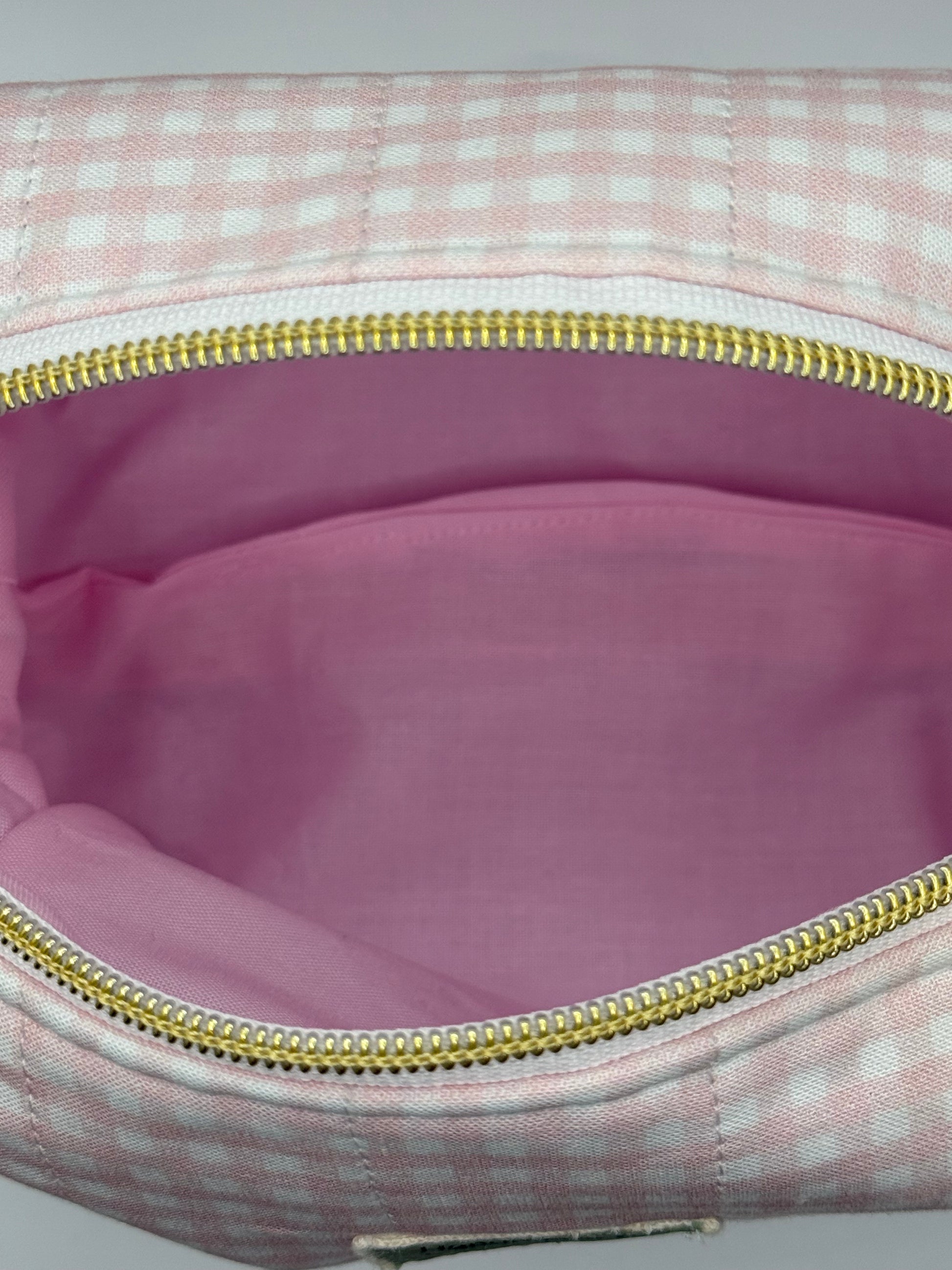 Introducing Rosy Check, the mini carry-all pouch that’s as sweet and charming as a picnic in the park. This design features a classic pink gingham pattern that adds a playful, retro vibe to your essentials. The soft pink and white checks create a warm, inviting look, perfect for those who love a bit of whimsy and timeless style.